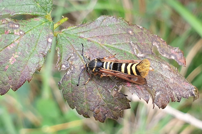 podobník pravčelovitý (Pennisetia hylaeiformis) na ostružine černicovej
