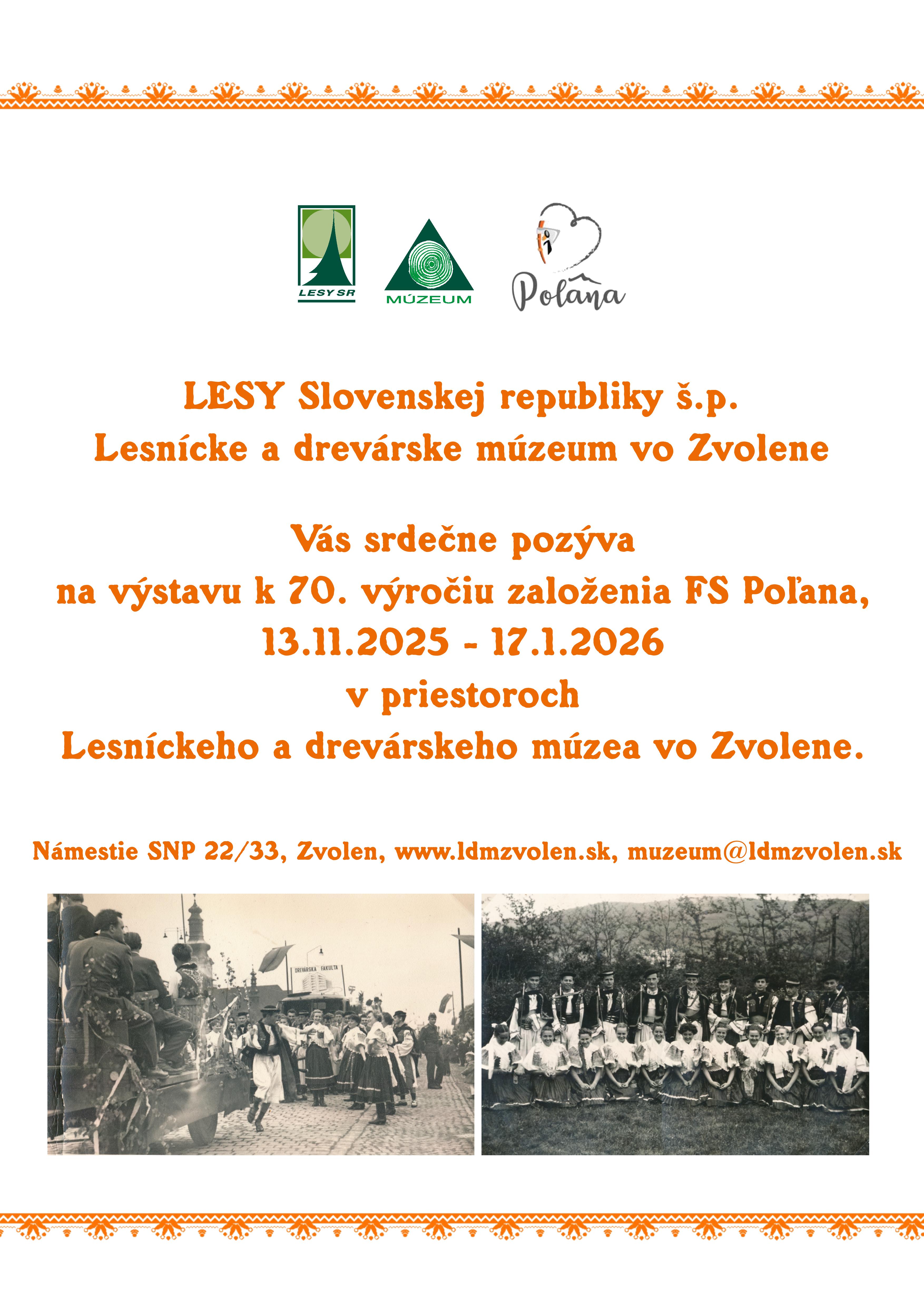 Výstava rozpráva príbeh tradície a návštevníkom priblíži bohatú históriu folklórneho súboru POĽANA, jeho kultúrne poslanie a nezmazateľnú stopu v srdci Technickej univerzity vo Zvolene. Dobové fotografie, ocenenia, kroje, audio-vizuálne ukážky ale aj osobné spomienky niekoľkých generácií členov mapujú kľúčové momenty súboru od jeho založenia v roku 1955 až po súčasnosť.